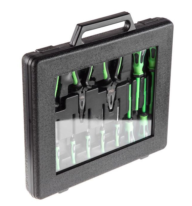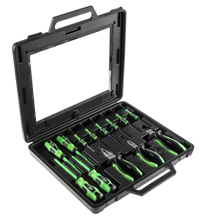 TESLA SET 3 – набор диэлектрических инструментов для дома, автомобиля и дачи из 13 предметов – шарнирно-губцевых инструментов и отвёрток. Переносит напряжение до 1000 В. Поменять розетку, подкрутить разболтавшиеся гайки, обрезать и закрепить провода - SET 3 подойдёт для всего. Поставляется в кейсе.