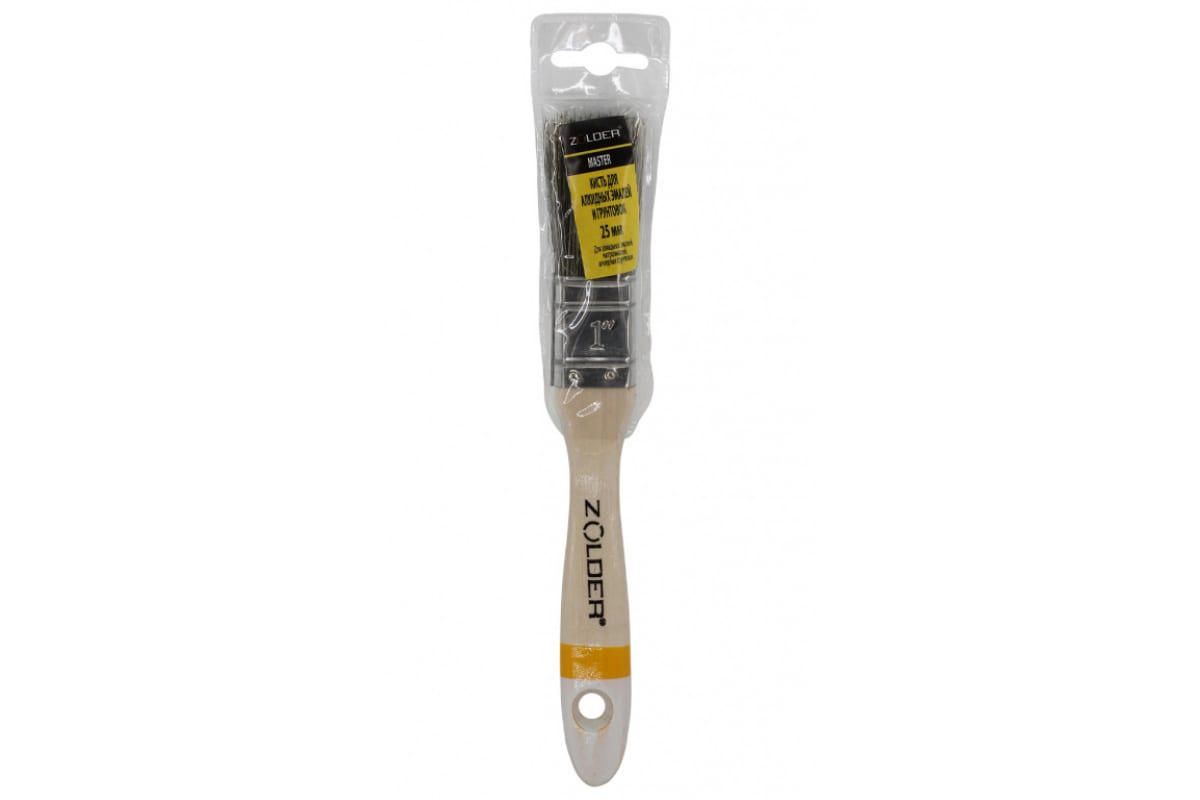 Кисть для алкидных эмалей и грунтовок плоская 25 х 12 мм, смеш.щетина, дерев.ручка Zolder Master / en02512 / 12 / 600