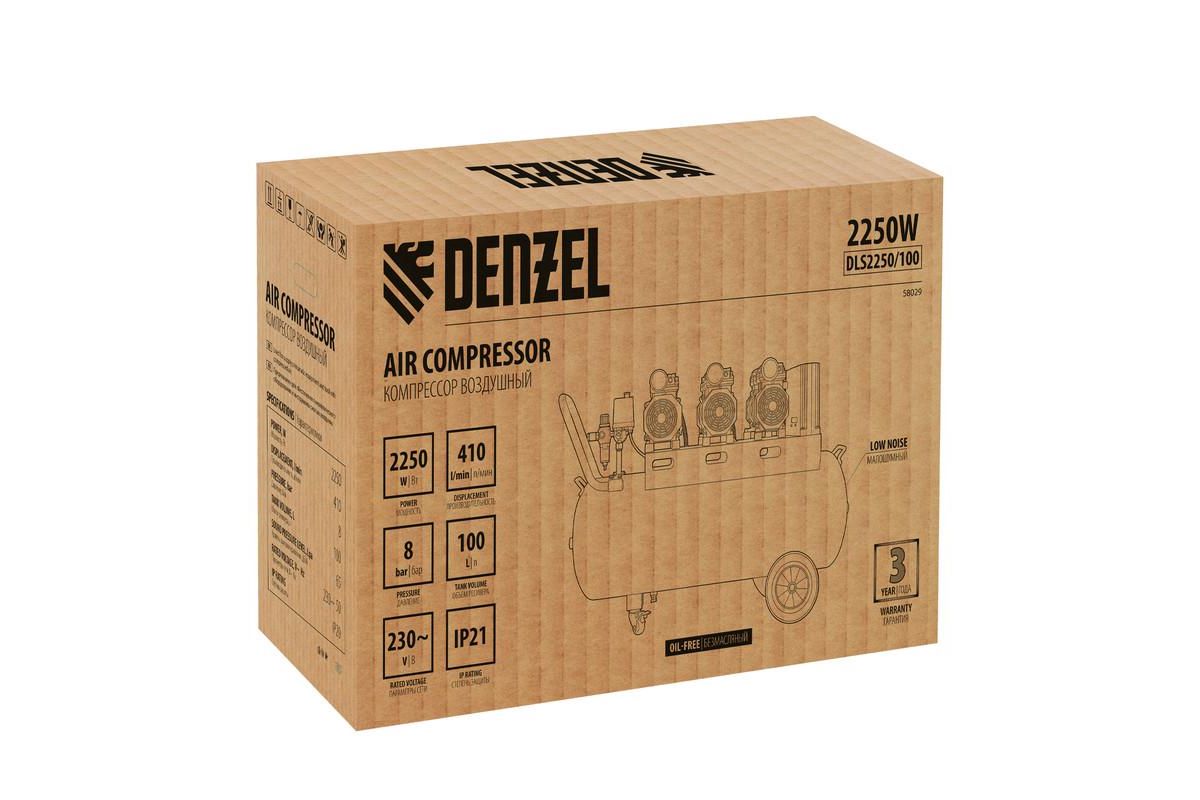 Компрессор безмаслянный малошумный DLS 2250/100, 2250 Вт, 3х750, 100 л, 410 л/мин блок упр// Denzel